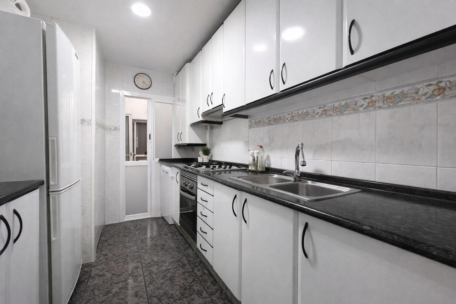 El salón-comedor se convierte en el corazón de la casa: luminoso, cómodo y con salida a un balcón donde cabe ese café de media mañana o el respiro al final del día. La cocina es independiente, práctica y funcional, perfecta para quienes disfrutan cocinando sin invadir el resto de la vivienda.